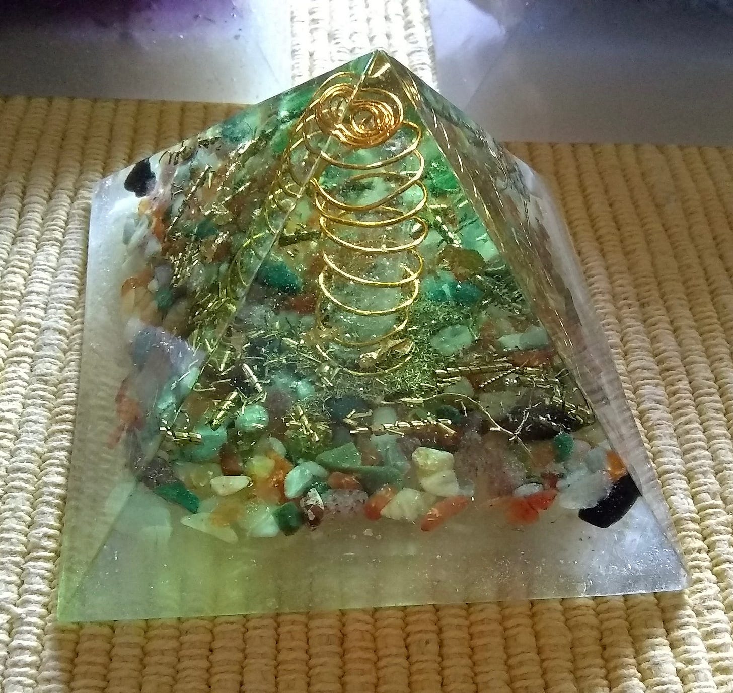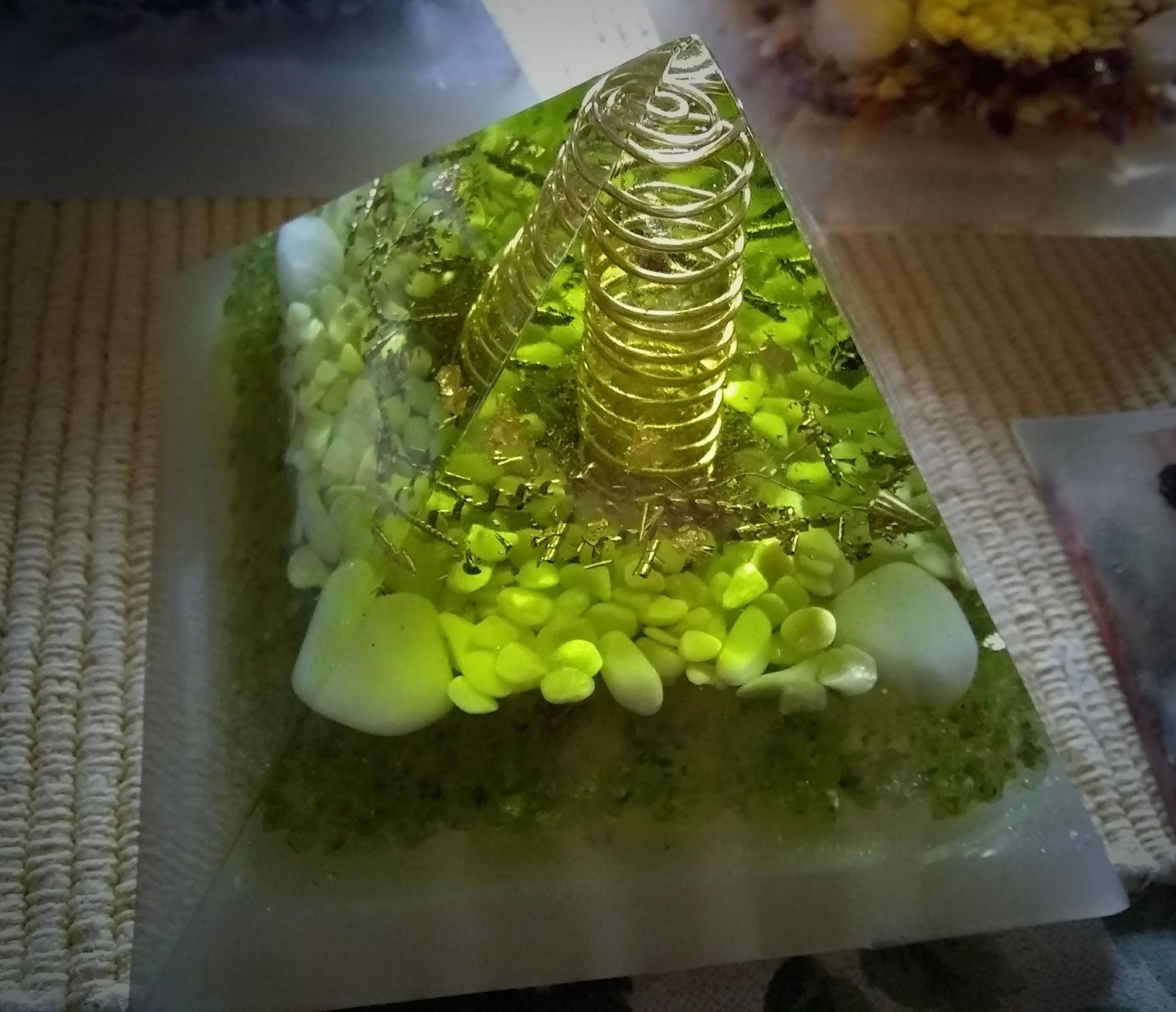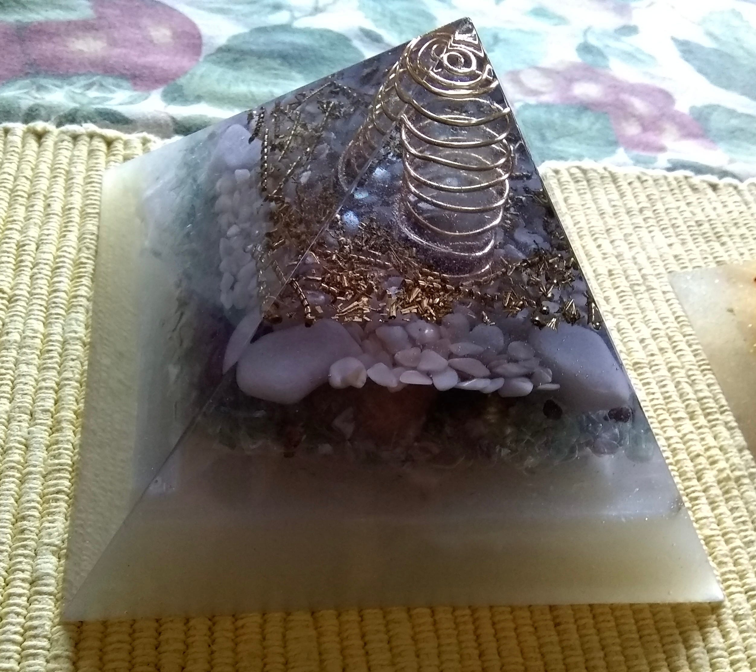 Orgone heals, calms, encourages, protects. In addition to quartz, other crystals with their own specific purposes are added: for mental clarity, to protect, heal, forgive, love unconditionally, to attract blessings, strengthen families, harmonize environments, and attract abundance.