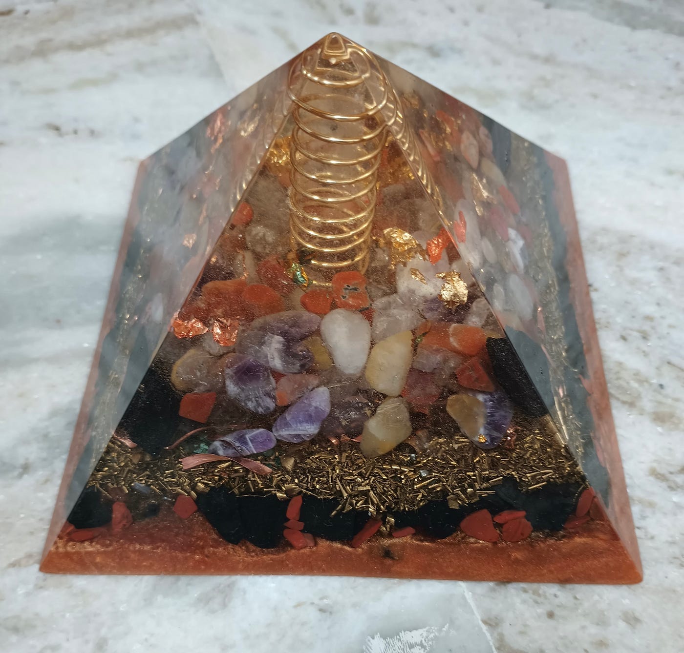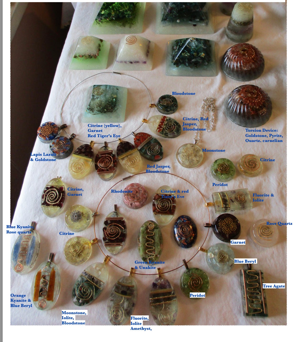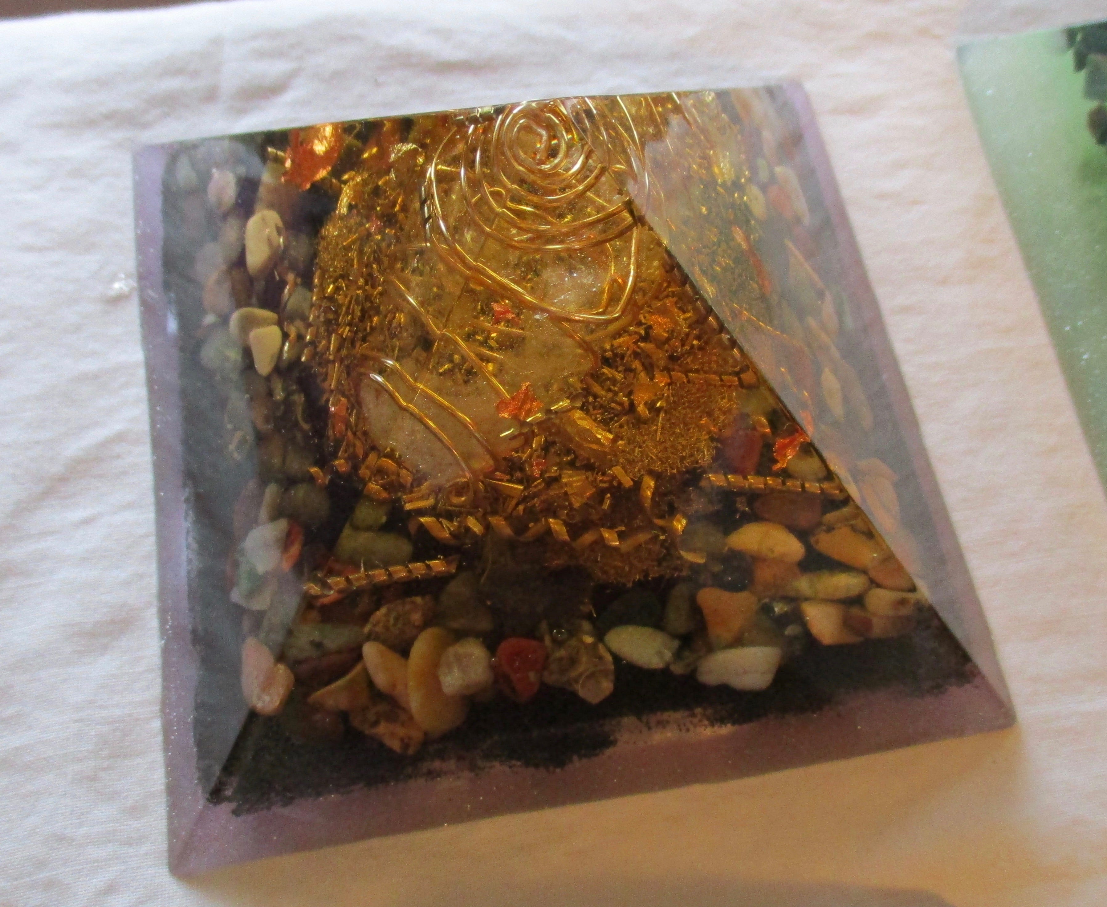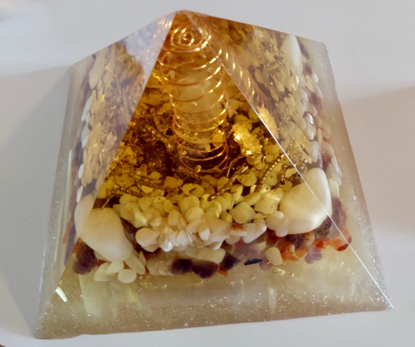Orgone heals, calms, encourages, protects. In addition to quartz, other crystals with their own specific purposes are added: for mental clarity, to protect, heal, forgive, love unconditionally, to attract blessings, strengthen families, harmonize environments, and attract abundance.